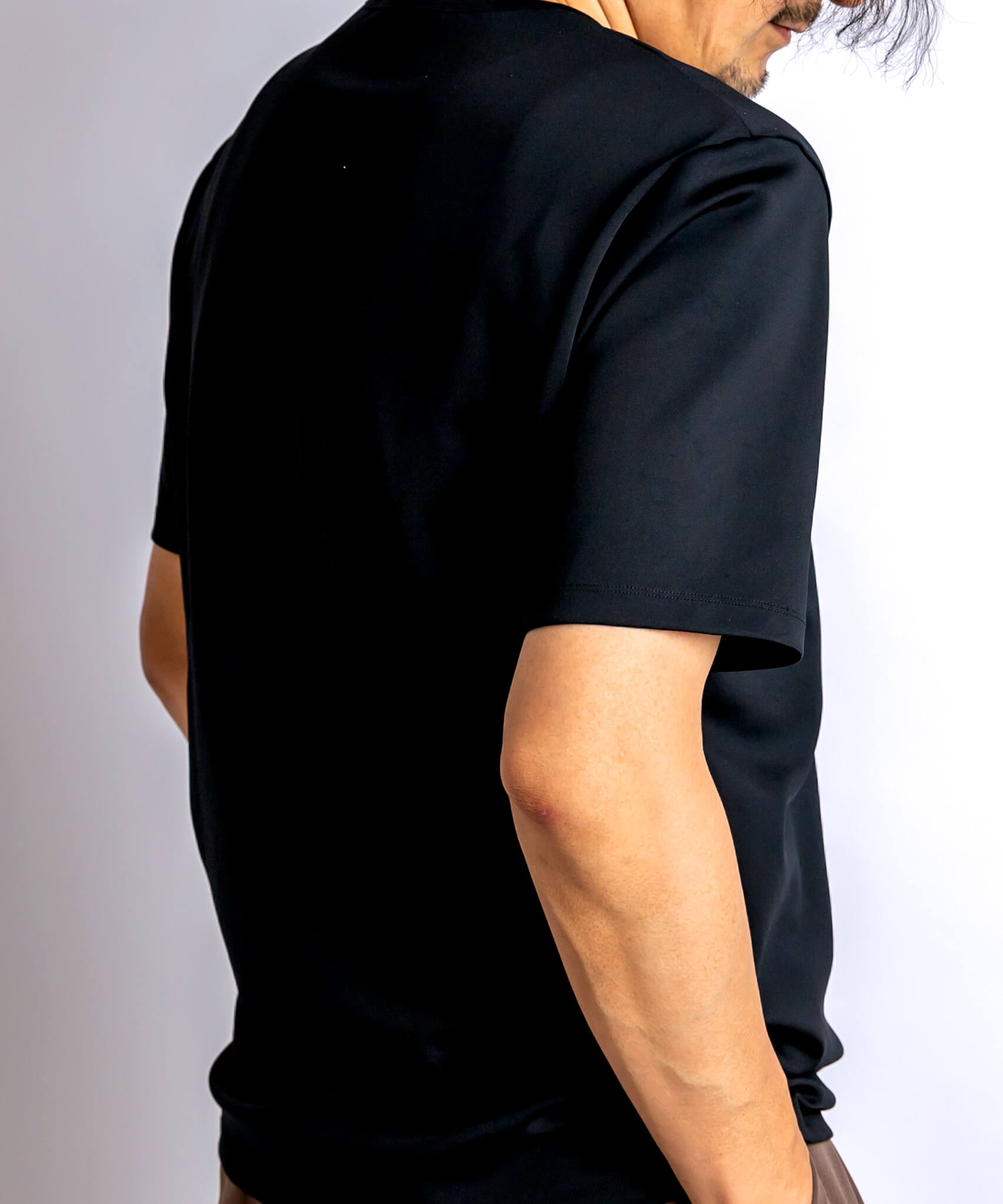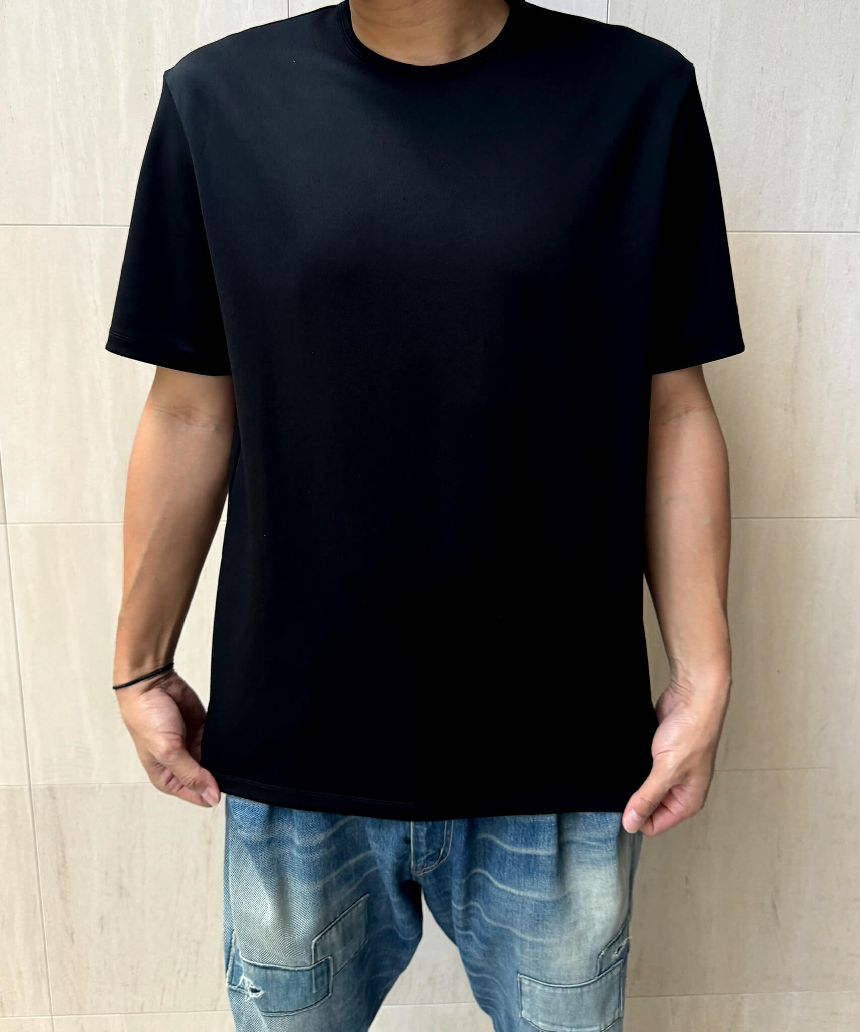1日着用してもシワシワヨレヨレになり難い素材で肌馴染みの良さに包まれます。デニム、短パンのラフスタイルからスラックスを合わせたスマートカジュアル、スーツの下に着用してオフィシャルな場でも引き立つドレスアップTシャツとして活躍してくれます。アウター、インナー共に活躍出来るので1年中着回せる黒Tシャツです。